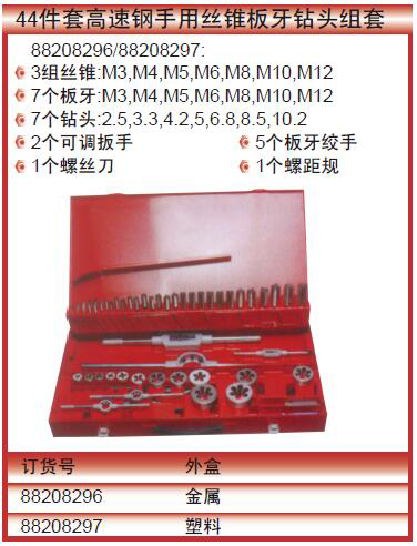 44件套高速钢手用丝锥板牙钻头组套