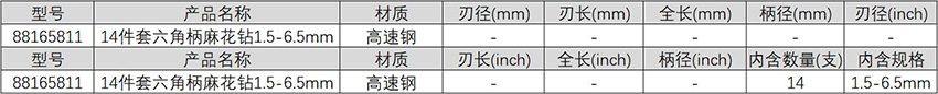 ·产品特征: ·14件套六角柄麻花钻1.5-6.5mm