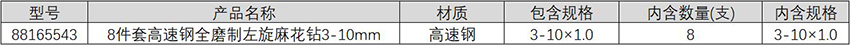 8件套高速钢全磨制左旋麻花钻