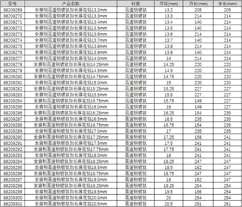 全磨制高速钢镀钛加长麻花钻14.0mm
