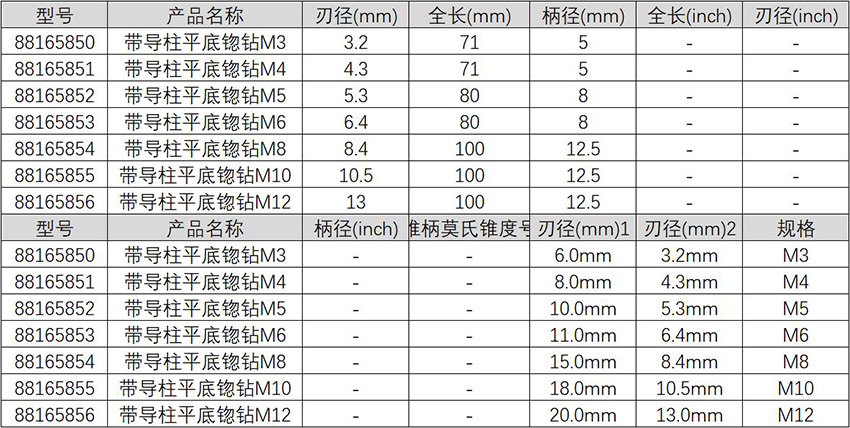带导柱平底锪钻M4