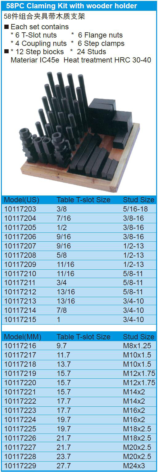 * 6个T型槽螺母* 6个法兰螺母* 4个连接螺母* 6个踏板夹* 12个踏板夹* 24个螺柱Materiar IC45e热处理HRC 30-40