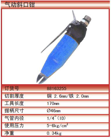 当前位置:首页 > 动力工具及耗材 > 气动工具 > 其它气动工具 > 气动斜口钳