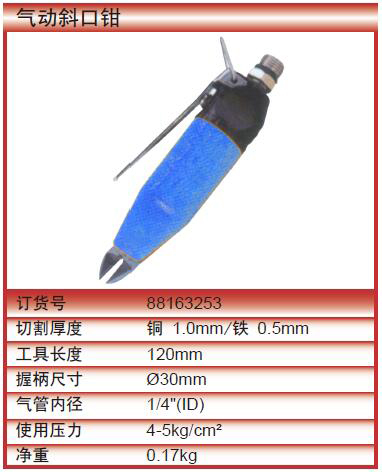 当前位置:首页 > 动力工具及耗材 > 气动工具 > 其它气动工具 > 气动斜口钳