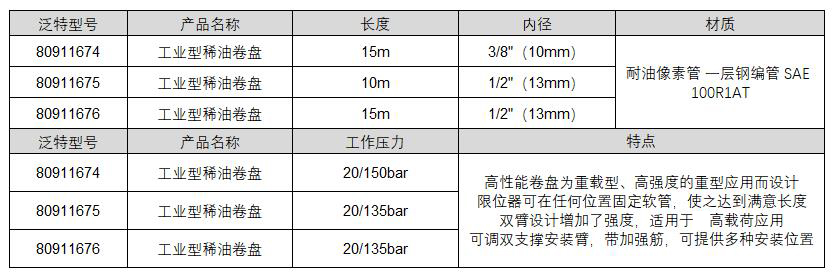 ·高性能卷盘为重载型、高强度的重型应用而设计 ·限位器可在任何位置固定软管,使之达到满意长度 ·双臂设计增加了强度,适用于极高载荷应用 ·可调双支撑安装臂,带加强筋,可提供多种安装位置