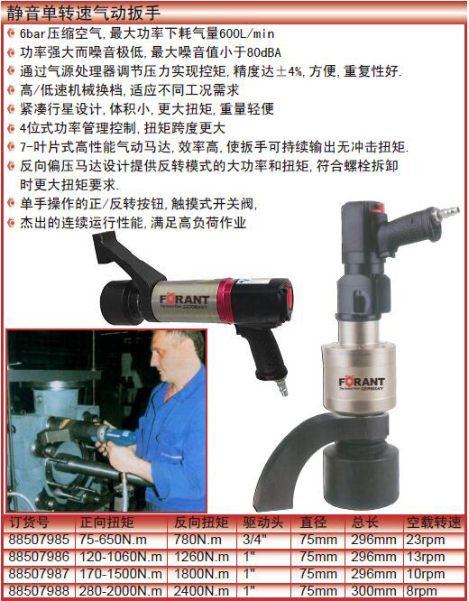 ·7-叶片式高性能气动马达,效率高,使扳手可持续输出无冲击扭矩.