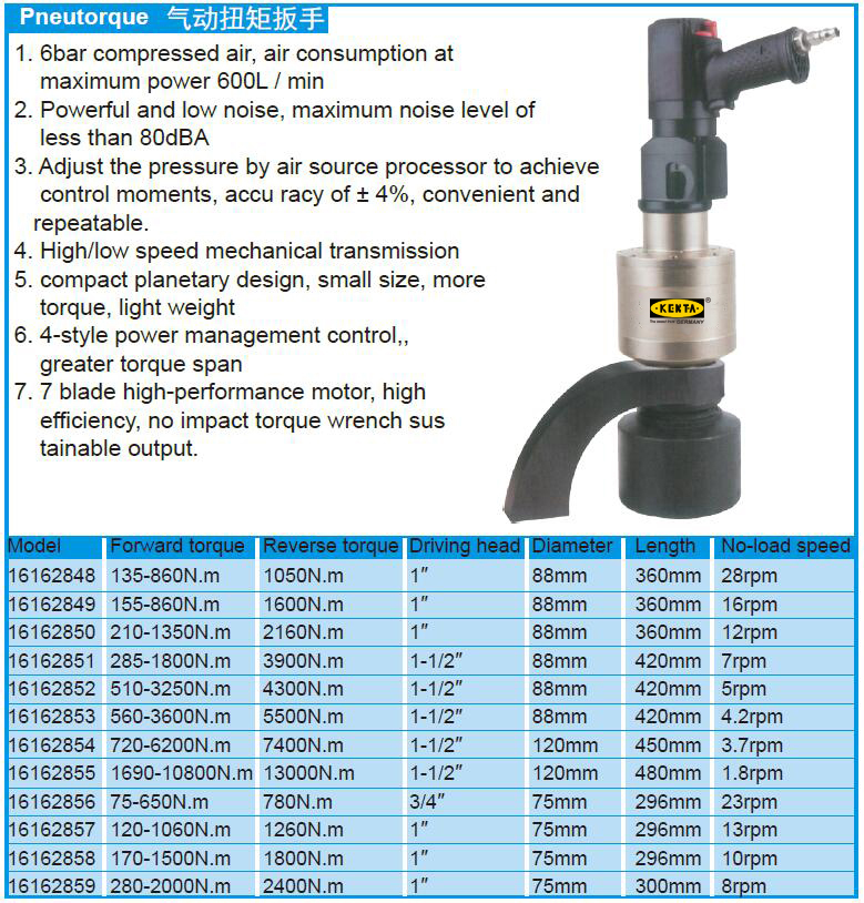 订货号 制造商型号 驱动方头 空转转速 扭力范围 最大扭力 手柄形式 带负载耗气量 工具长度 净重 进气口接头尺寸 价格 购物车