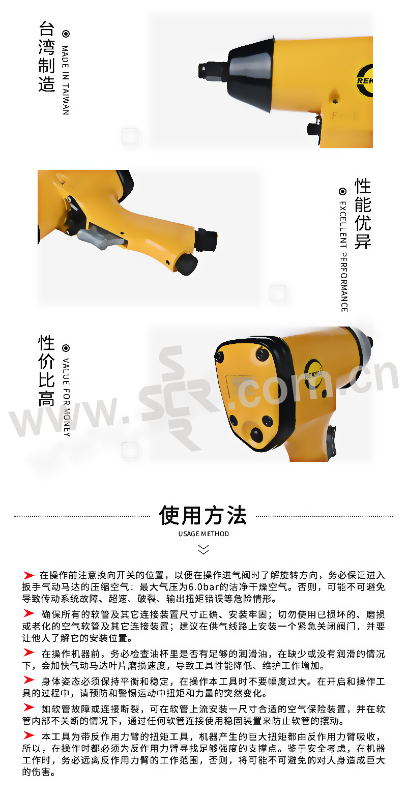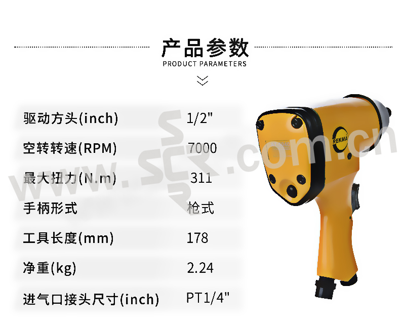 REKMA/锐克马 1/2"气动冲击扳手(单击锤) AT-5040 M16;7,000RPM;311.8 N.m 1把