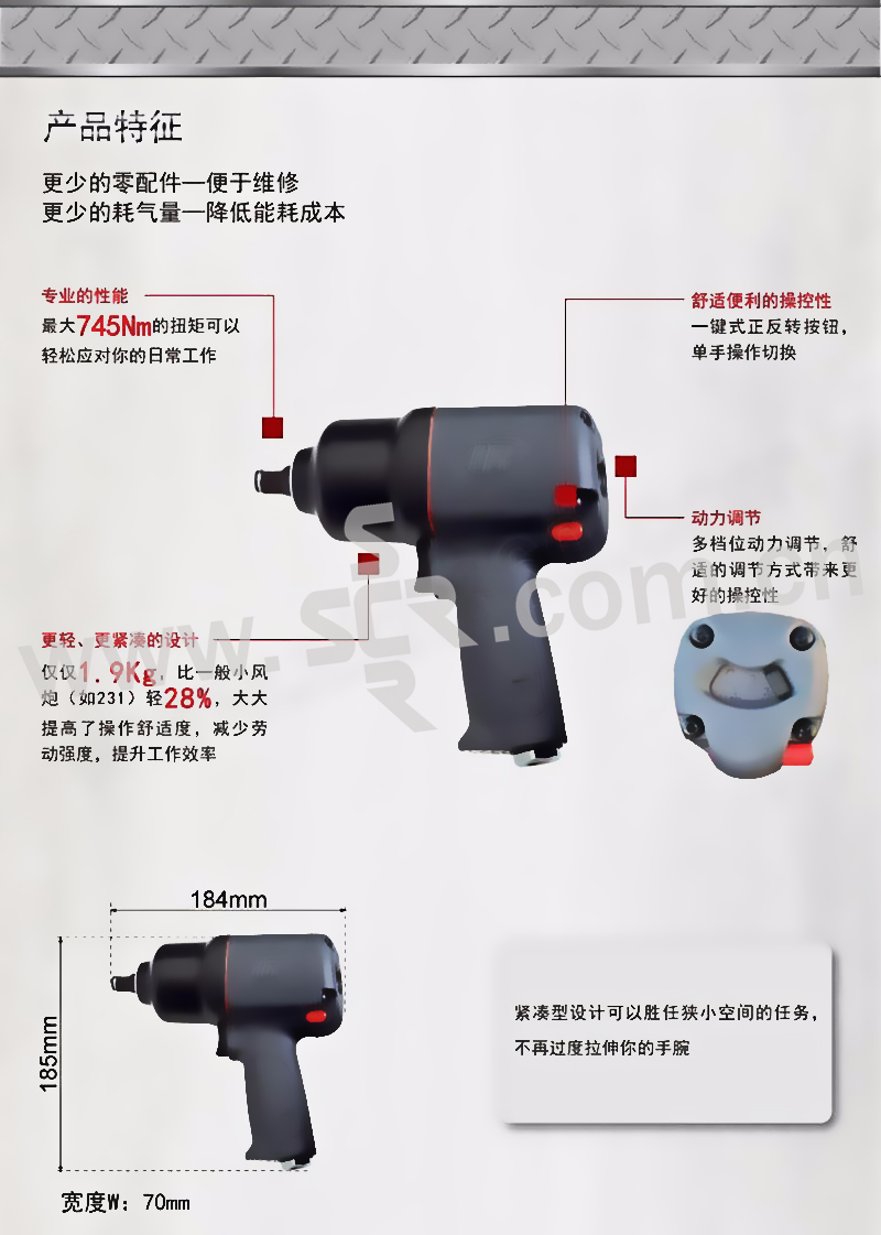 INGERSOLL RAND/英格索兰 1/2"系列重级气动冲击扳手 2130AP 1把