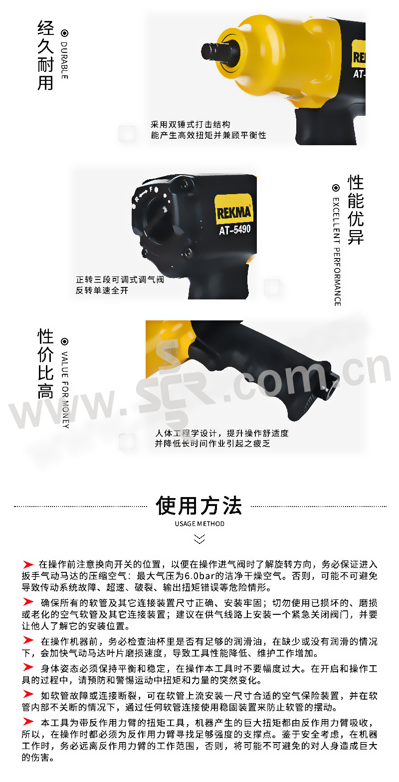 REKMA/锐克马 1/2"气动冲击扳手 AT-5490 方头 1356N.m 1把