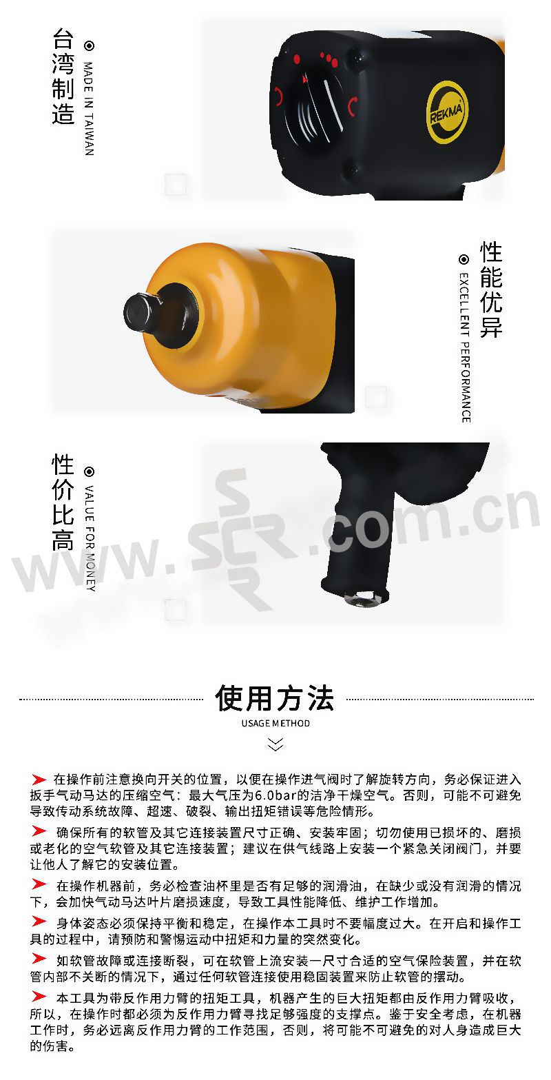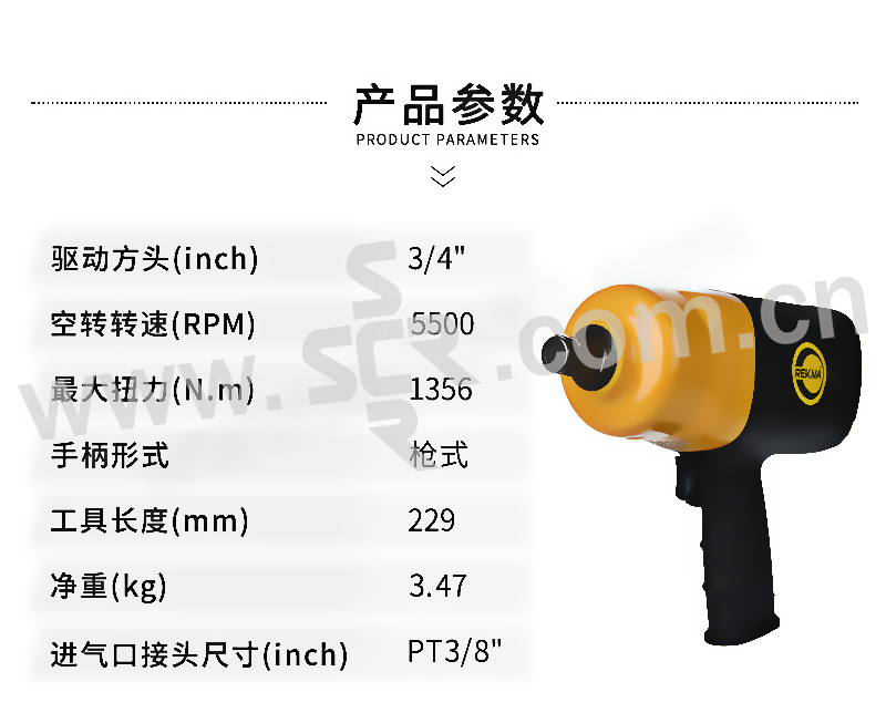 REKMA/锐克马 3/4"气动扳手(轻便型)(框式双锤)工业级 AT-5163 方 M28;5,500RPM;1,355.8 N.m 1把