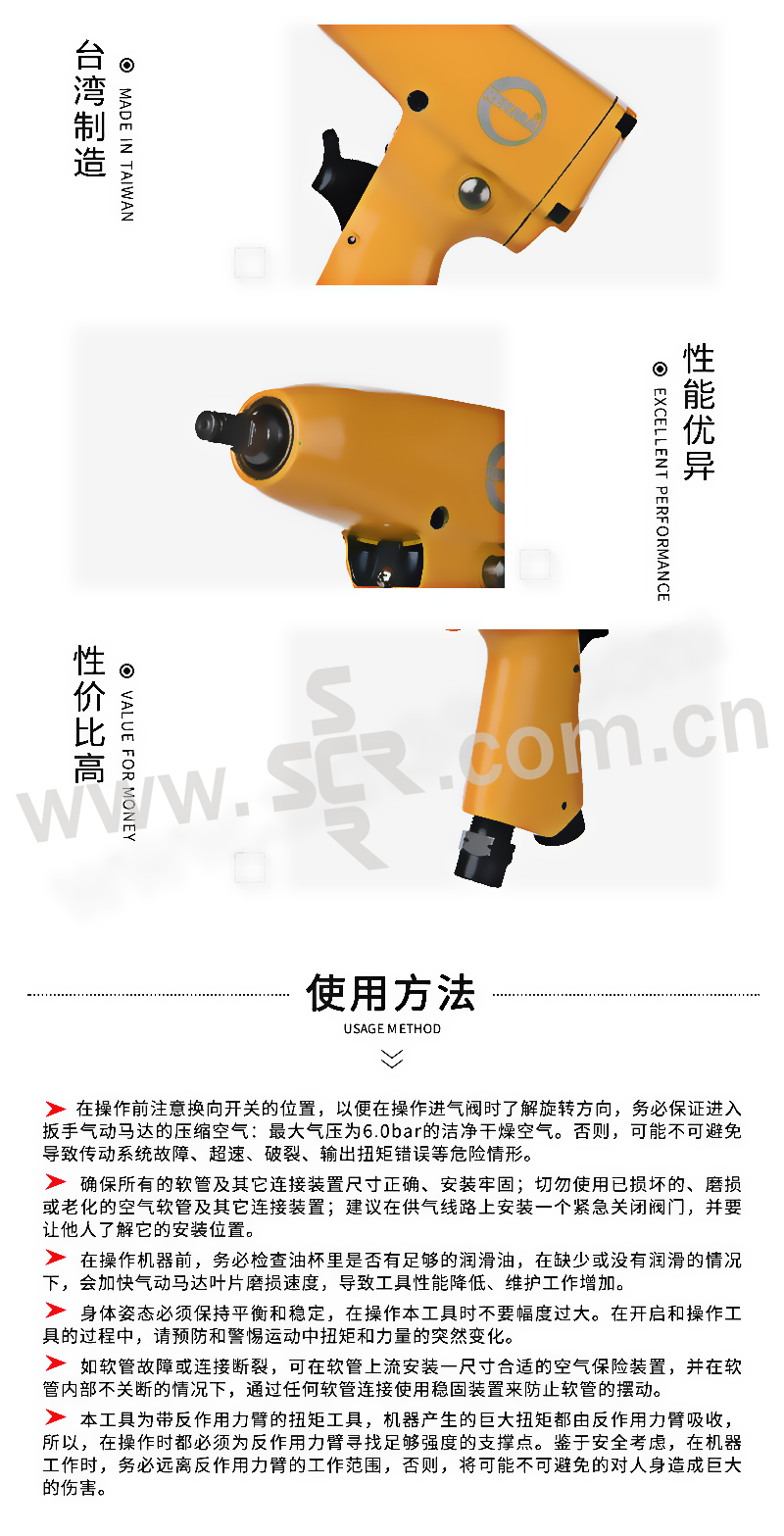 REKMA/锐克马 3/8"气动冲击扳手(冲击销) AT-5031 方 M13;9,000RPM;257.6 N.m 1把
