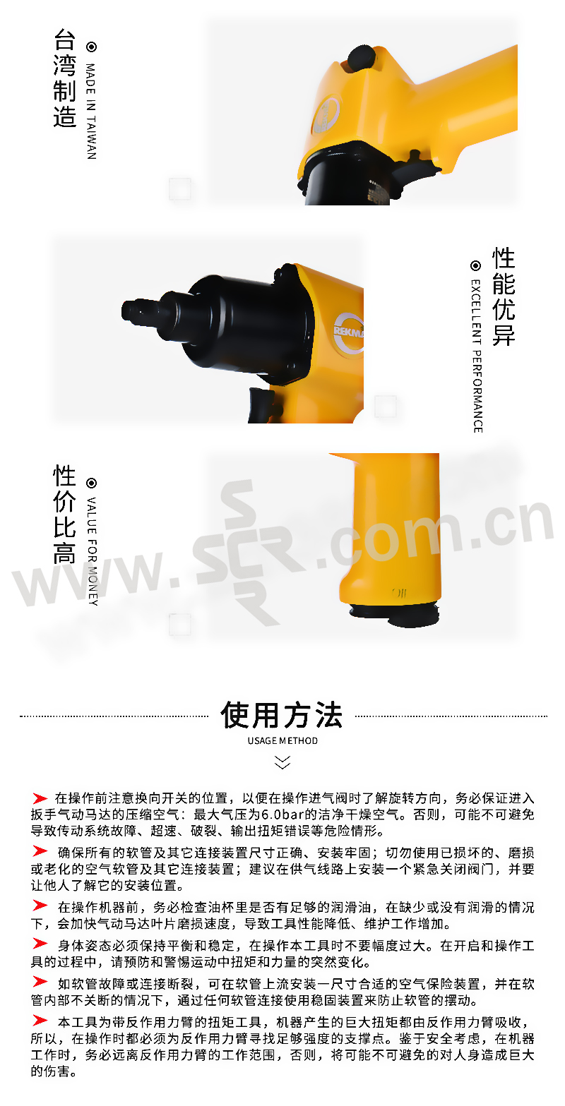 REKMA/锐克马 3/8"气动冲击扳手(框式单锤)工业级 AT-5133 方 M11;7,000RPM;189.8 N.m 1把