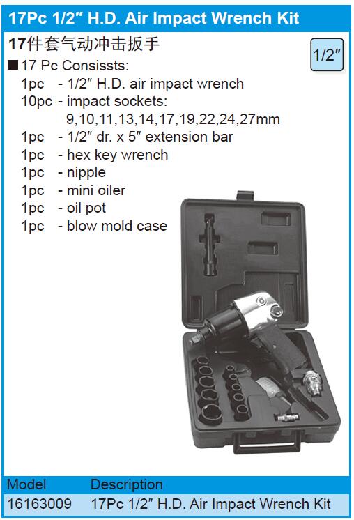 17Pc 1/2″ H.D. Air Impact Wrench Kit
