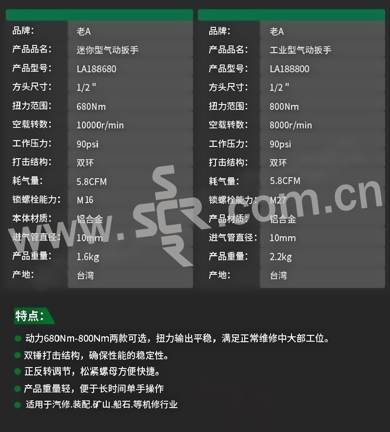 LAOA/老A 1/2"气动扳手 LA188680 680N·m 1把