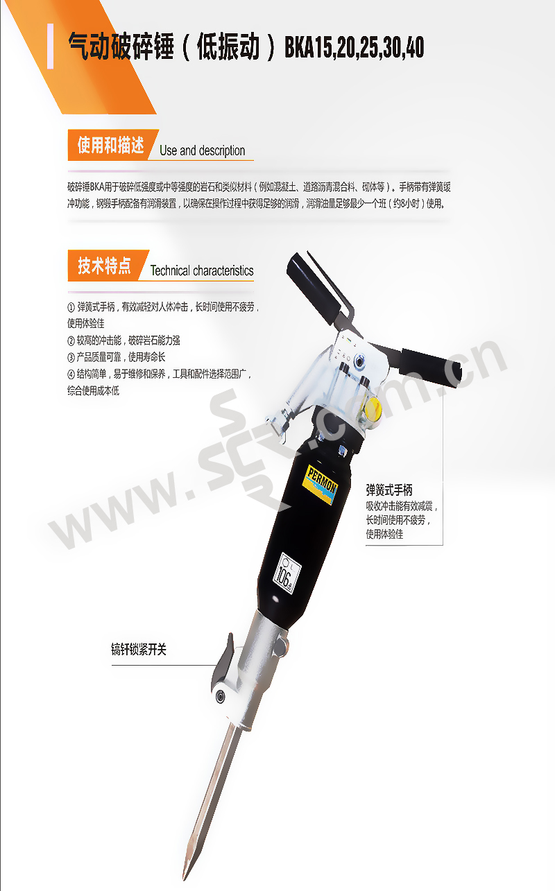 ·弹簧式手柄,有效减轻对人体冲击,长时间使用不疲劳,使用体验佳