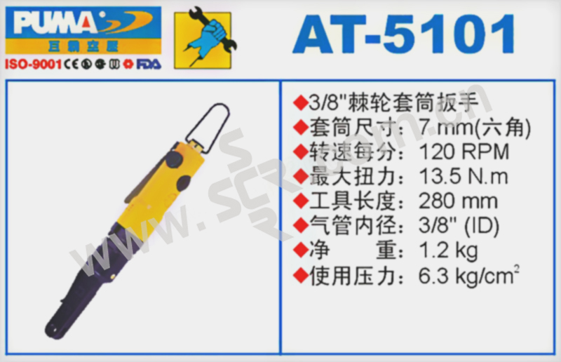PUMA/巨霸 气动棘轮套筒扳手 AT-5101 7mm 六角 3.5N·m 1.2kg 1把