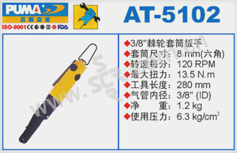PUMA/巨霸 8mm气动棘轮扳手 AT-5102 1把