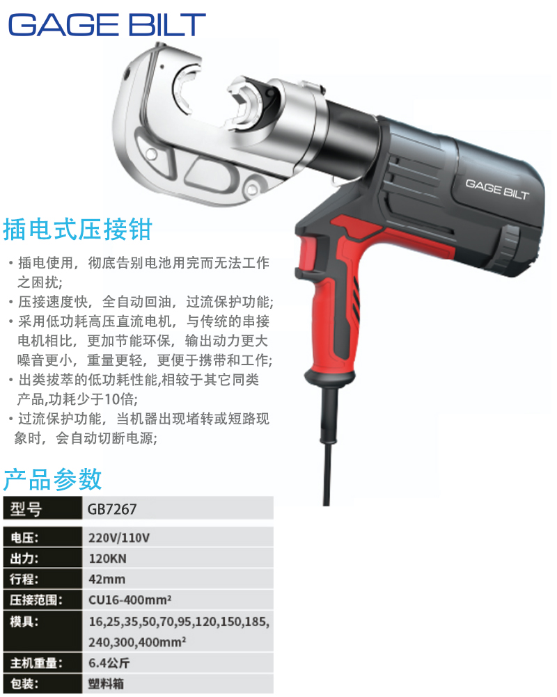 压接范围:CU16~400mm²