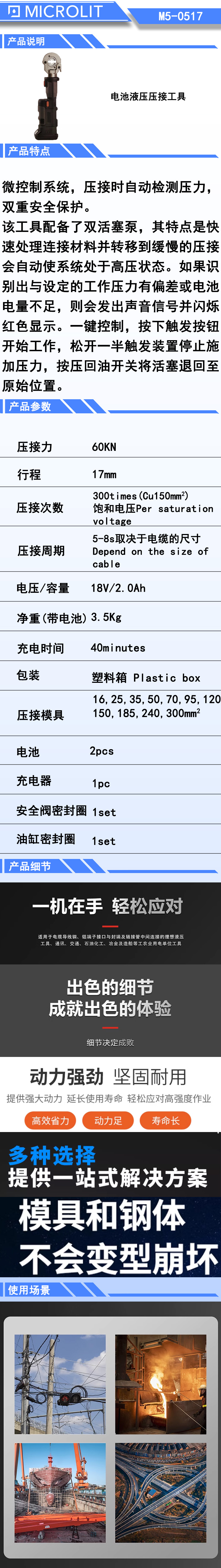 K29719 M5-0517 17mm 60KN 300times(Cu150m㎡)饱和电压 5-8s取决于电缆的尺寸 18V/2.0Ah 40minutes 塑料箱 6105.00