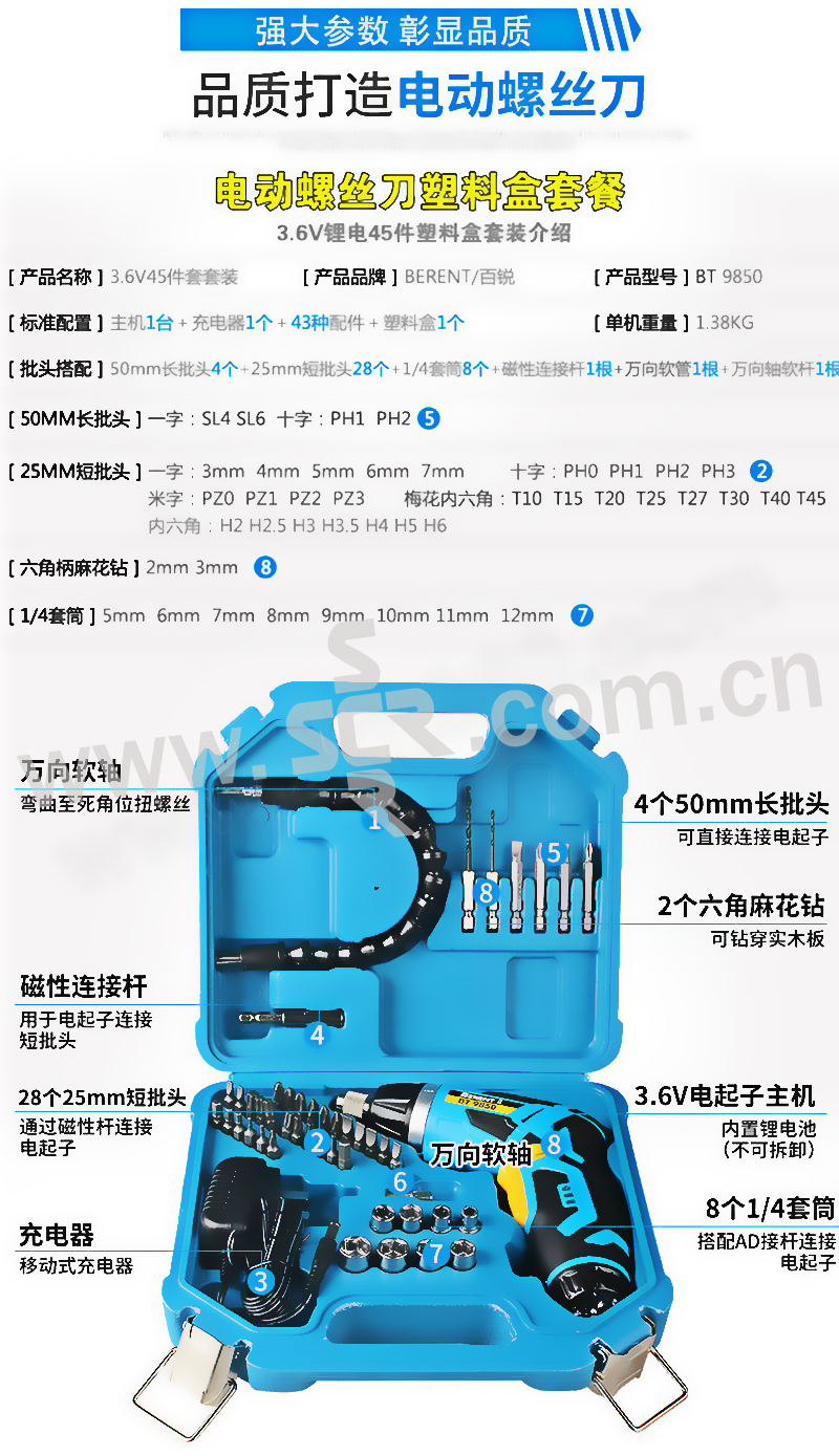 BERENT/百锐 锂电充电螺丝批 BT9850 3.6V 电池 1300mAh 1把