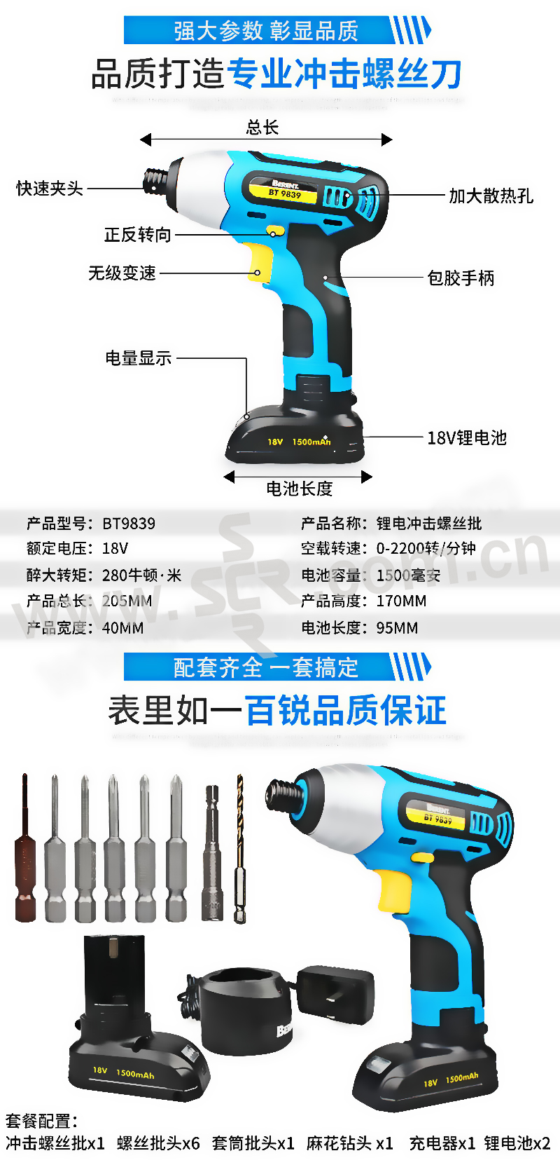 BERENT/百锐 锂电冲击螺丝批 BT9839 18V电池1500mAh双锂电池 1把