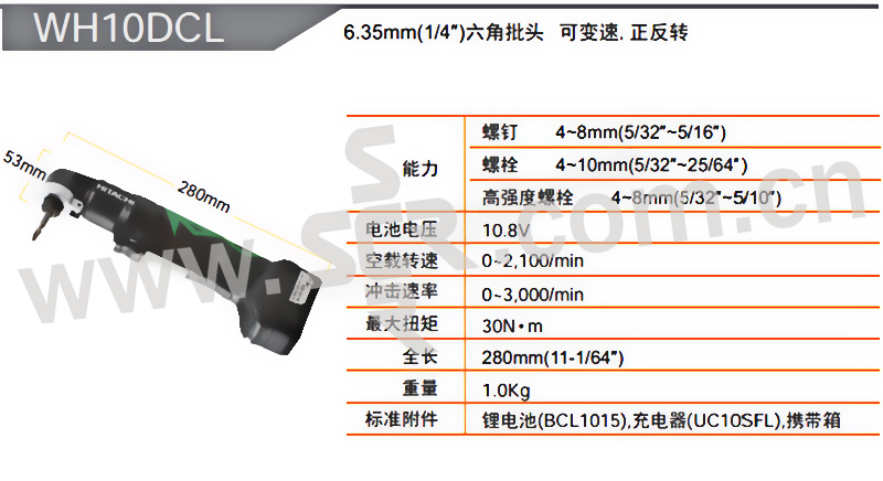 HIKOKI/日立 10.8V角向 锂电冲击螺丝批 WH10DCL 含有一电一充 10.8V/1.5Ah 1台