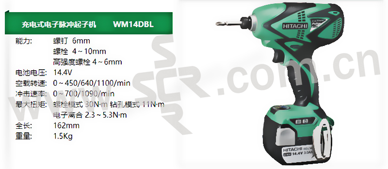 HIKOKI/日立 14.4V充电式锂电脉冲起子机 WM14DBL 含有两电一充 14.4V/3Ah 1台