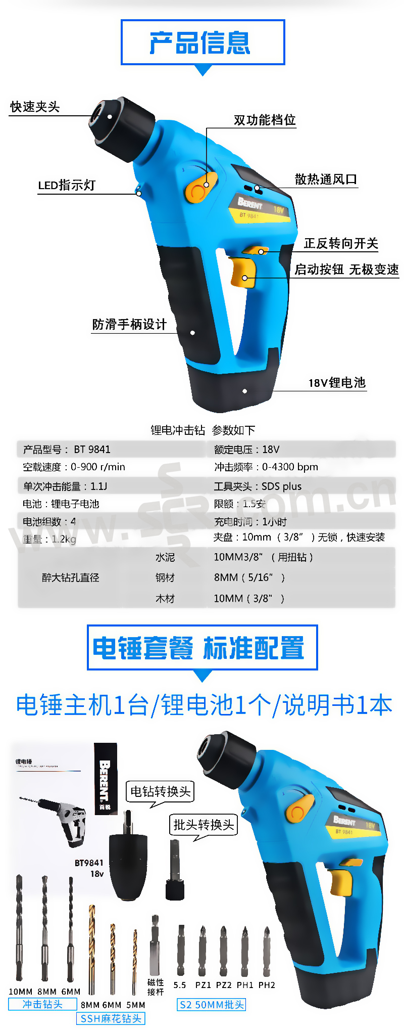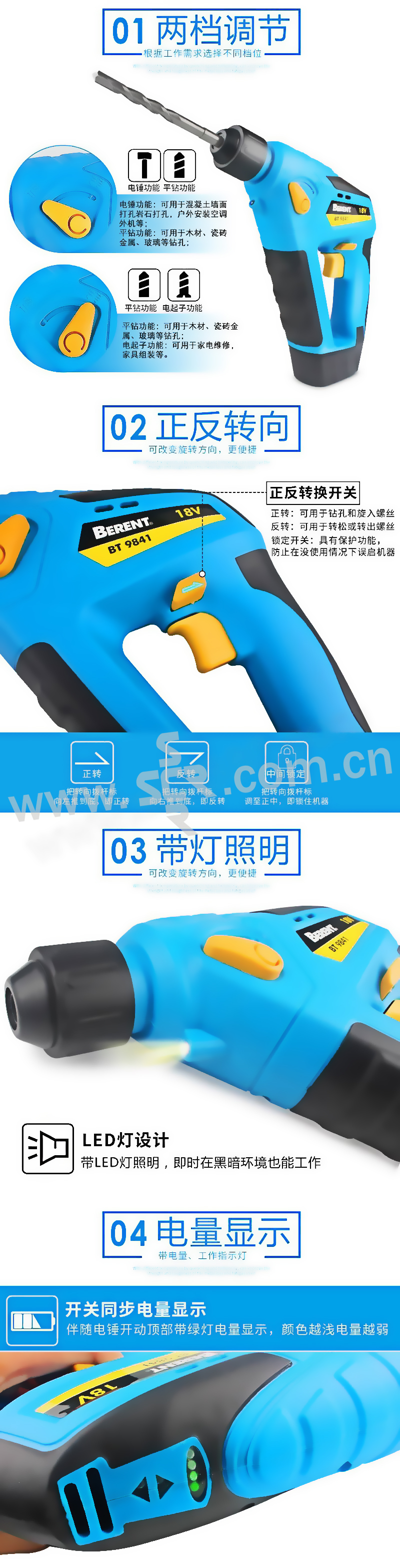 BERENT/百锐 锂电电锤 BT9841 18V 电池 1500mAh 1把