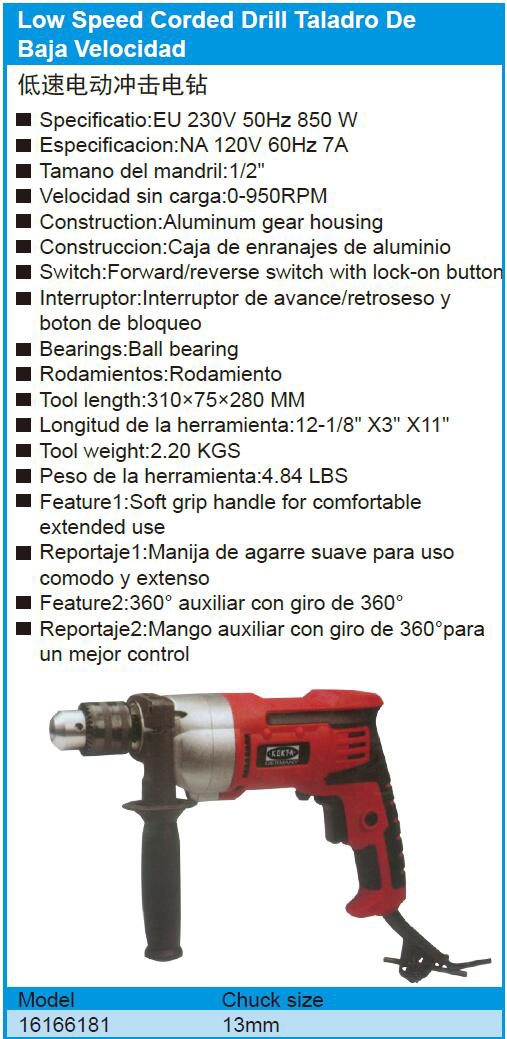 Low Speed Corded Drill Taladro De Baja Velocidad