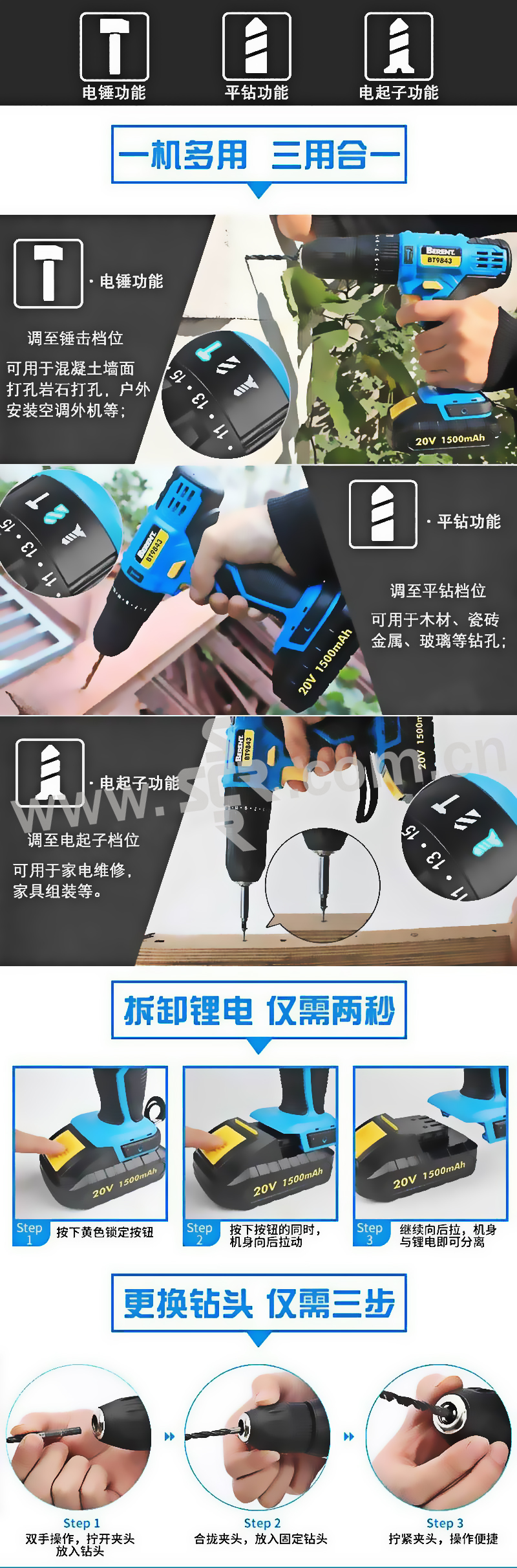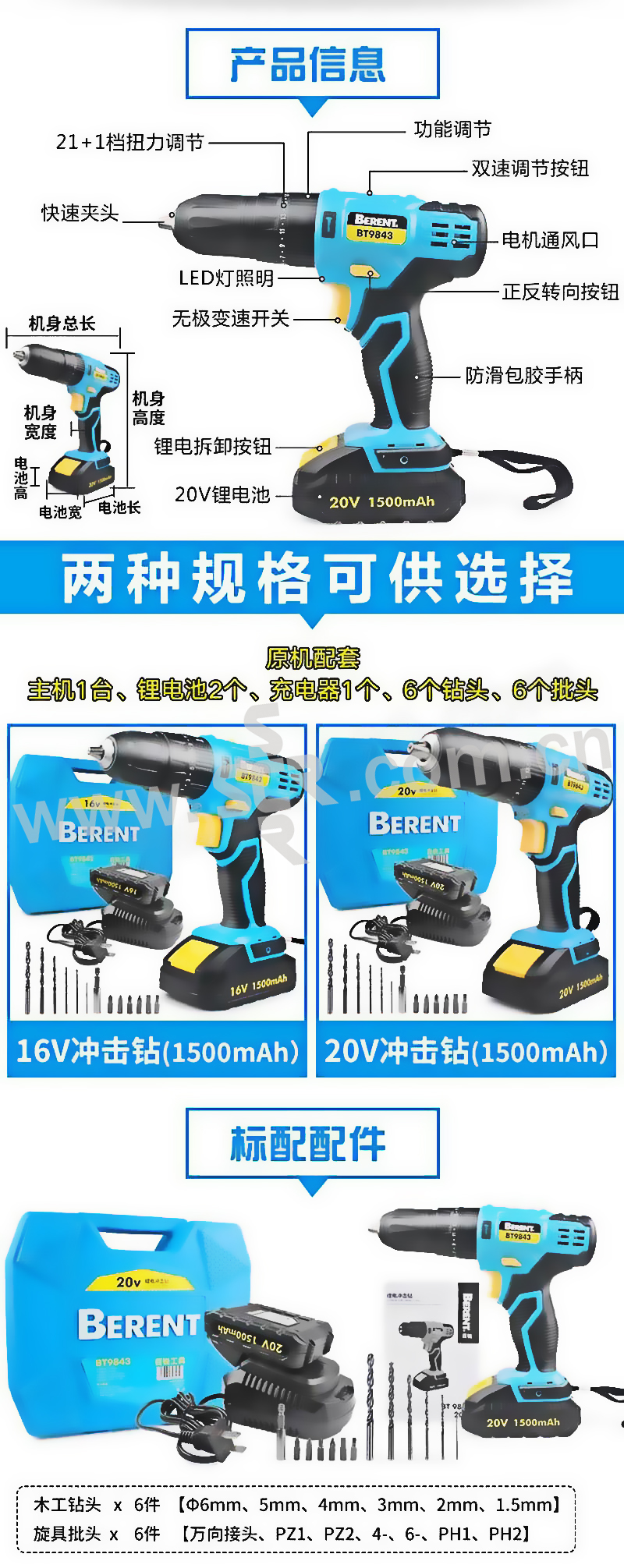 BERENT/百锐 锂电冲击钻 BT9842 16V 电池 1500mAh 1把