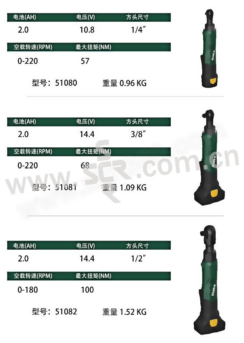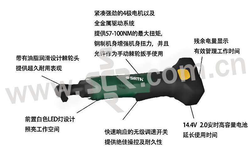 SATA/世达 1/4"系列10.8V锂电棘轮扳手 SATA-51080 包含两电一充 10.8V/2Ah 1把