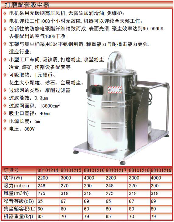 订货号 制造商型号 功率 空气流量 真空压力 集尘箱容量 标准附件 重量 吸力 风量 噪音等级 价格 购物车