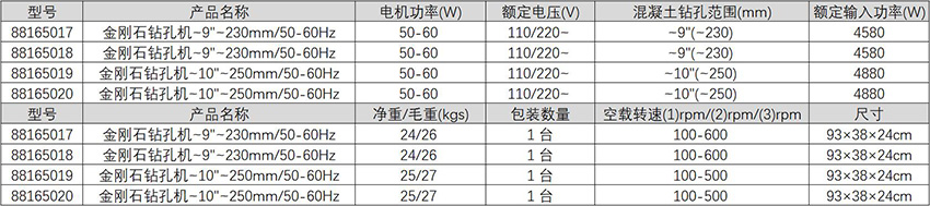A40219 88165017 110/220v 4580w ~9"(~230)mm 100-600rpm 24/26kgs —— 50-60 w 1 台 93×38×24cm 19900.00