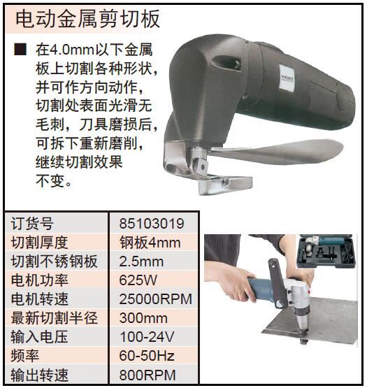 ·在4.0mm以下金属 板上切割各种形状, 并可作方向动作, 切割处表面光滑无毛刺,刀具磨损后,可拆下重新磨削,继续切割效果不变