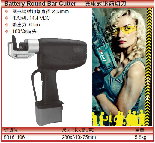 ·圆形钢材切割直径Ø13mm ·电动机:14.4VDC ·输出力:6ton180°旋转头