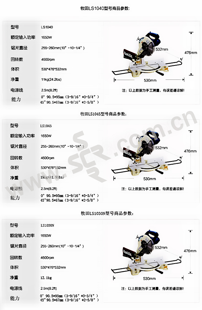 MAKITA/牧田 255mm 1650W 斜断锯 LS1030N 1台