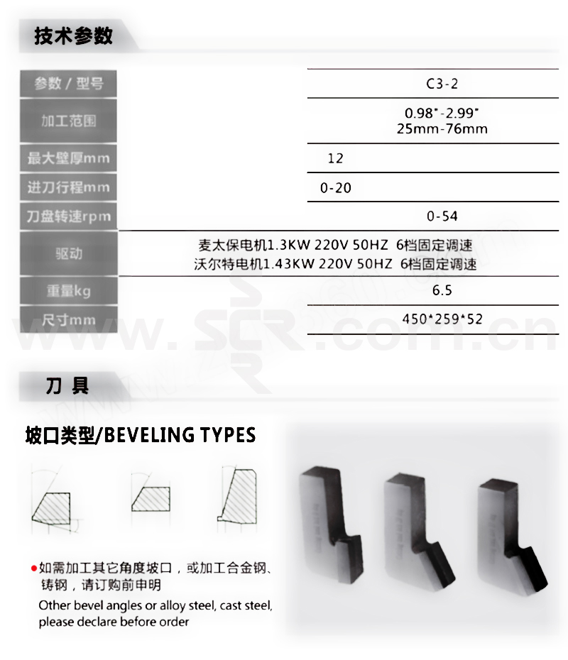 WATT/沃尔特 管子端面自动坡口机 C3-2(自产电机) 额定电压220V 1台