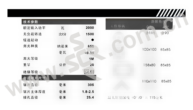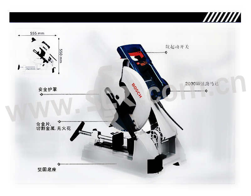 ·2000 瓦高扭矩马达能够实现快速的作业进程。 ·机器配备带启动电流限制的软启动功能。 ·集成式侧面加长件可为长工件提供理想支撑。 ·无需工具便可调节角度,以确保轻松操控和斜榫切割。 ·坚固的强化铸铝支承工作台。 ·易读的度数刻度使从 90 度至 45 度的调节变得更简单。 ·配备“Expert for Steel”钢材切割专业型锯条,可实现长使用寿命和清洁切割。