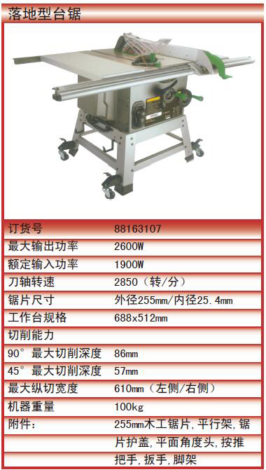落地型台锯