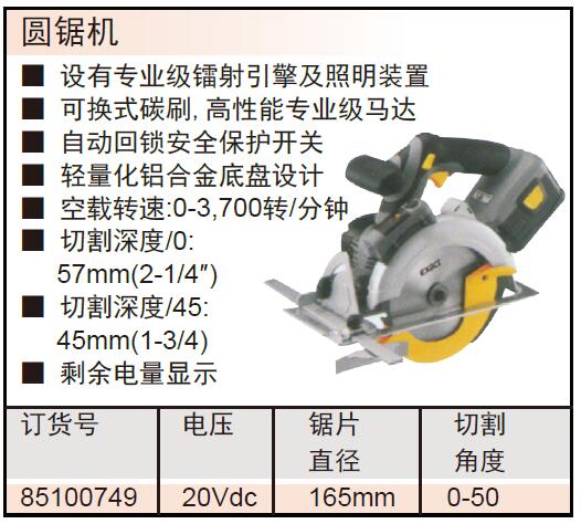 ·设有专业级镭射引擎及照明装置 ·可换式碳刷,高性能专业级马达 ·自动回锁安全保护开关 ·轻量化铝合金底盘设计 ·剩余电量显示