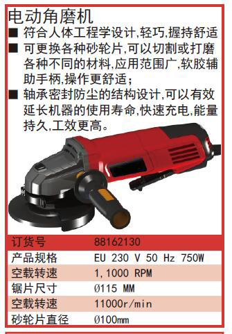 ·符合人体工程学设计,轻巧,握持舒适 ·可更换各种砂轮片,可以切割或打磨各种不同的材料,应用范围广,软胶辅助手柄,操作更舒适; ·轴承密封防尘的结构设计,可以有效延长机器的使用寿命,快速充电,能量持久,工效更高。