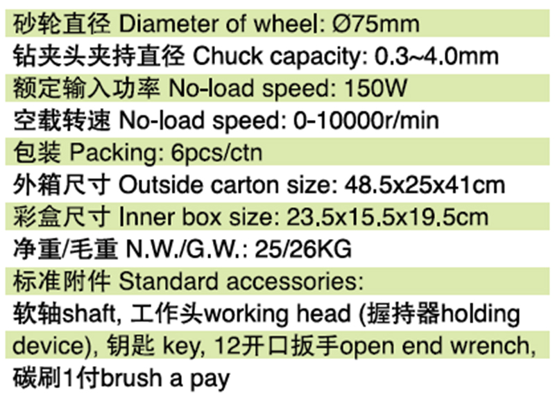 软轴,工作头,钥匙,12开口扳手,六角扳手,碳刷1付