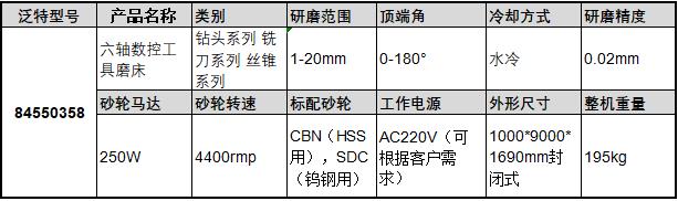 A32439 84550358 195kg 钻头系列 铣刀系列 丝锥系列 1-20mm 0-180° 水冷 0.02mm 250W 4400rmp CBN(HSS用),SDC(钨钢用) AC220V 可根据客户需求 1000*9000*1690mm封闭式 289958.90