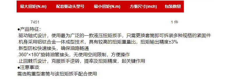 ·驱动轴式设计,使用最为广泛的一款液压扭矩扳手,只需更换套筒即可拆装多种规格的紧固件