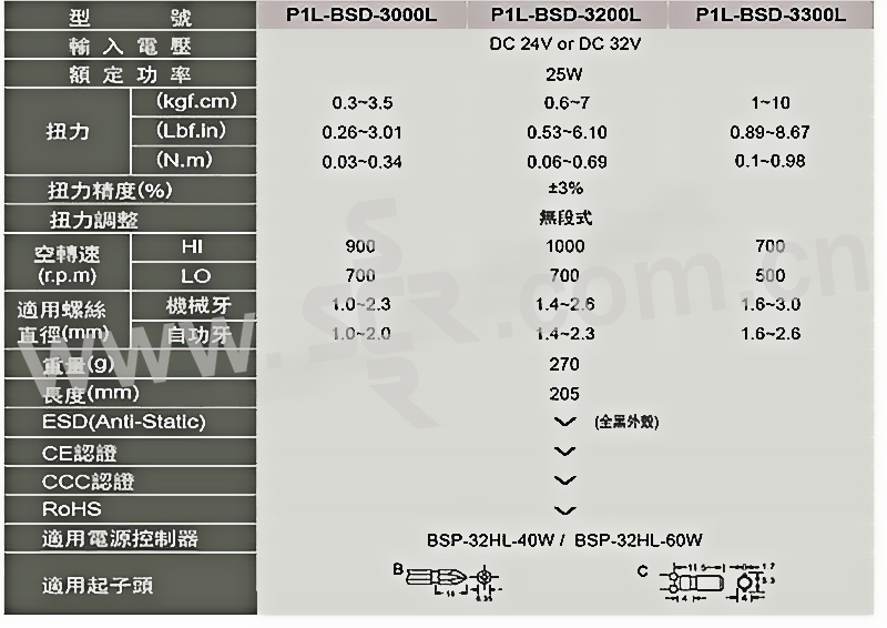 ·超低扭力0.2kgf.cm,扭力输出稳定,精准度3%。 ·外型超小直径 29.5mm,迷你轻巧好握。 ·短、小、轻、薄,符合人体功学原理,操作顺手。 ·重量最轻270g,作业不疲劳,适合小螺丝的低扭力作业。 ·高性能马达