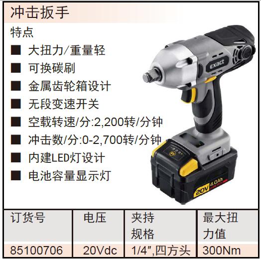 D28860 85100705 20Vdc 1/2“,四角头 300Nm 0-3000转/分钟 无段变速开关,可正反转 11239.00