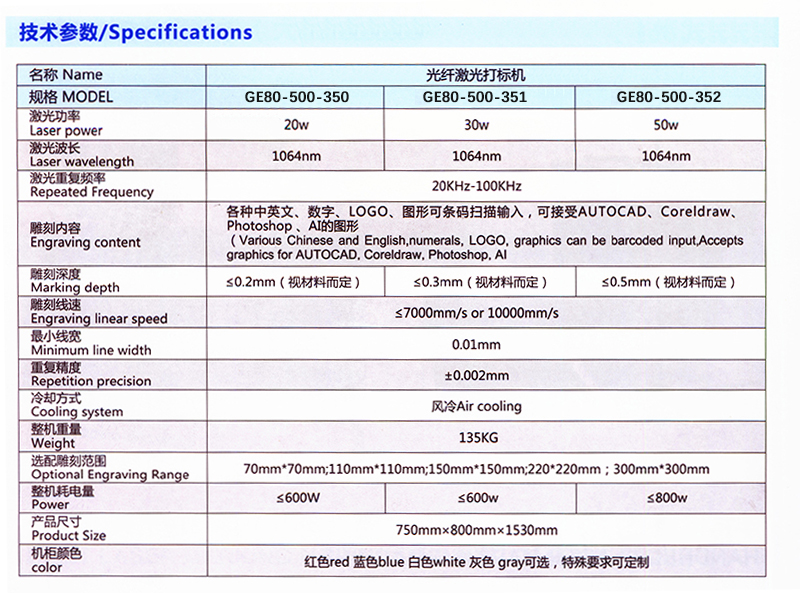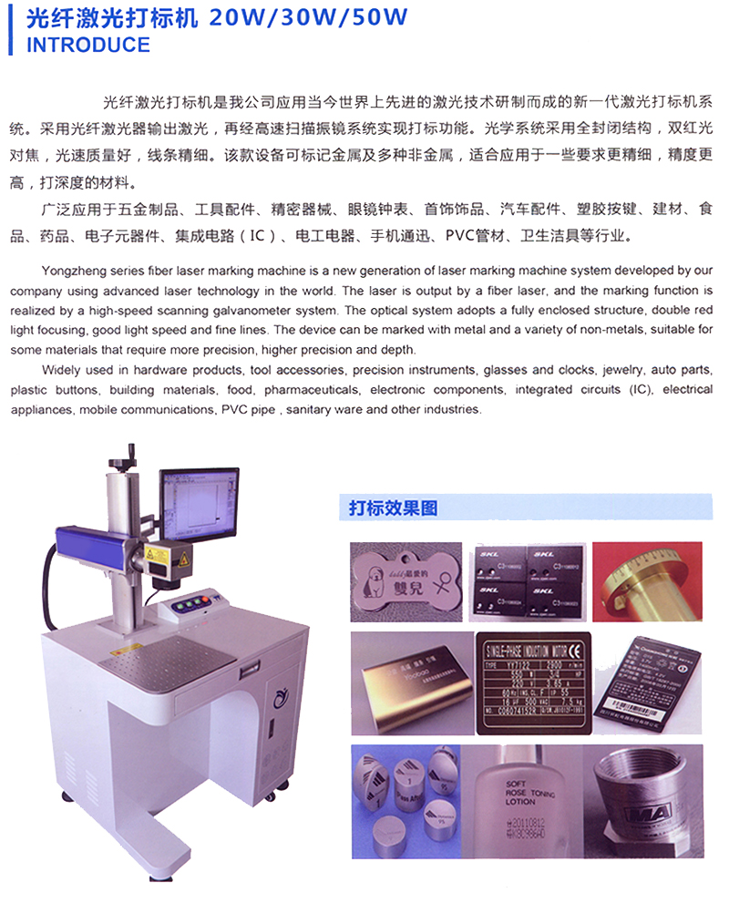 ·光纤激光打标机是我公司应用当今世界上先进的激光技术研制而成的新一代激光打标机系统,采用光纤激光器输出激光,再经高速扫描振镜系统实现打标功能。