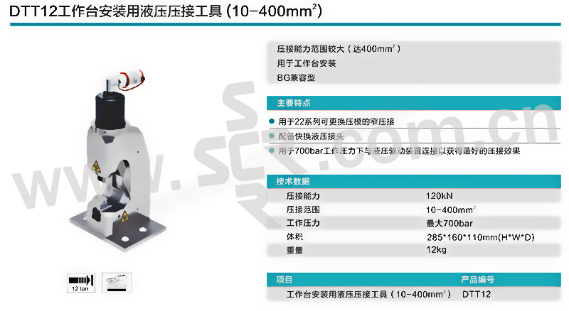 JUGUM/优亘 工作台安装用液压压接工具 DTT12 10~400mm2 含标配压接模 1套