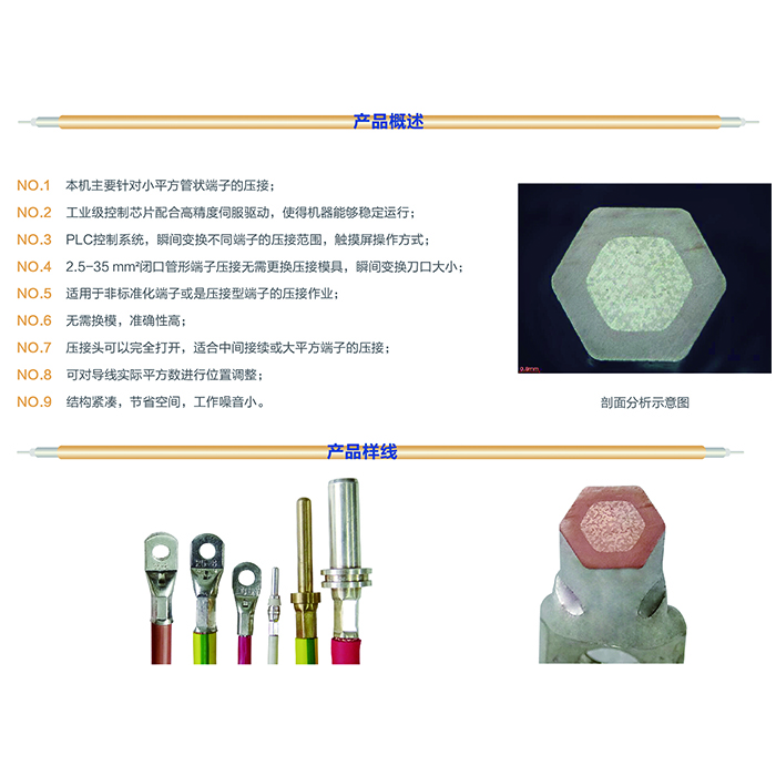 ·用途:1、本机主要针对小平方管状端子的压接;2、适用于非标准化端子或是压接型端子的压接作业。